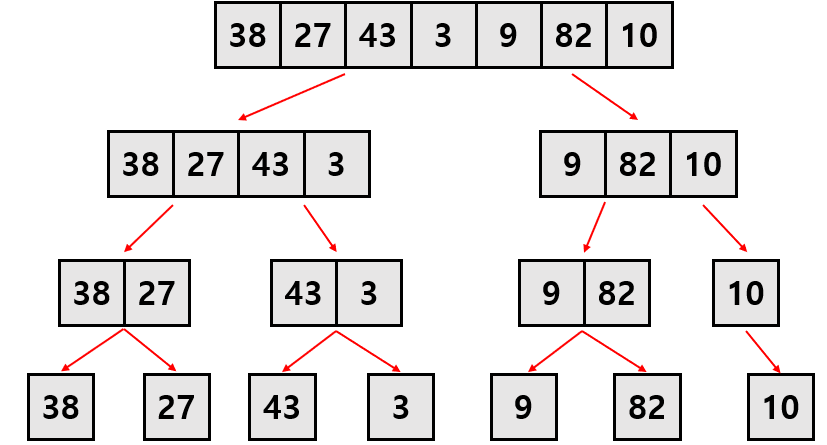 2) 각 sub-sequence의 크기가 1이 될 때까지 반복한다.