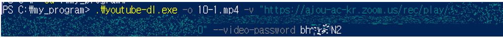 C:\> youtube-dl -o "[동영상파일명.mp4]" -v "[동영상 URL주소]" --video-password "[패스워드]"