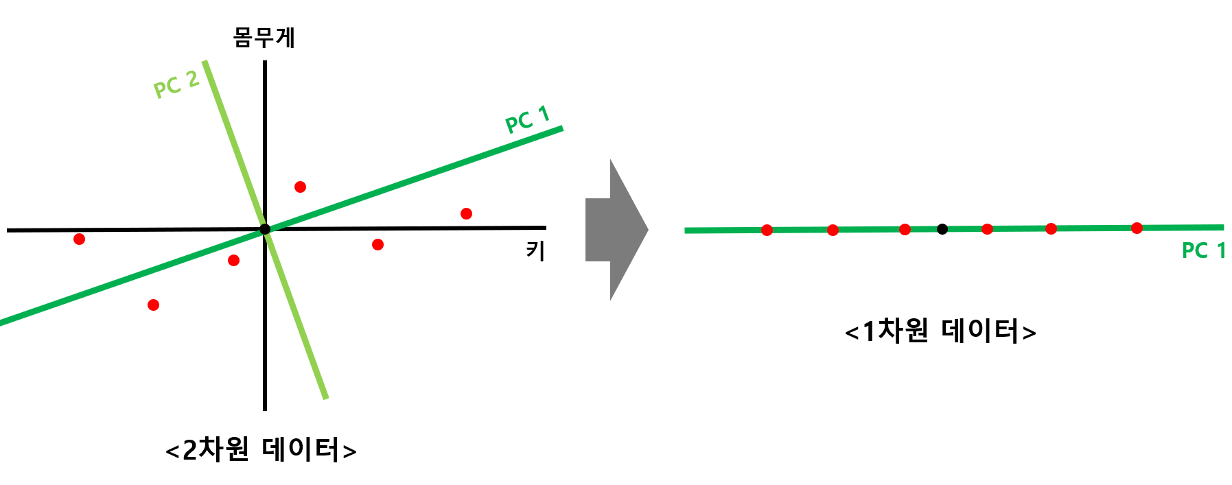 만약 89% 정도의 특징만으로도 해당 데이터를 잘 나타낼 수 있을 것이라고 판단되면, PC2 축을 제거하고, PC1 축만을 가지고 1차원으로 나타낼 수 있다.