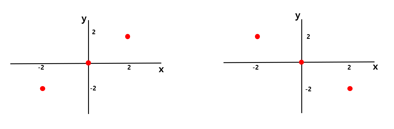 해당 표의 데이터를 2차원 평면상에 나타내보면 오른쪽 그래프와 같이 될 것이다.
