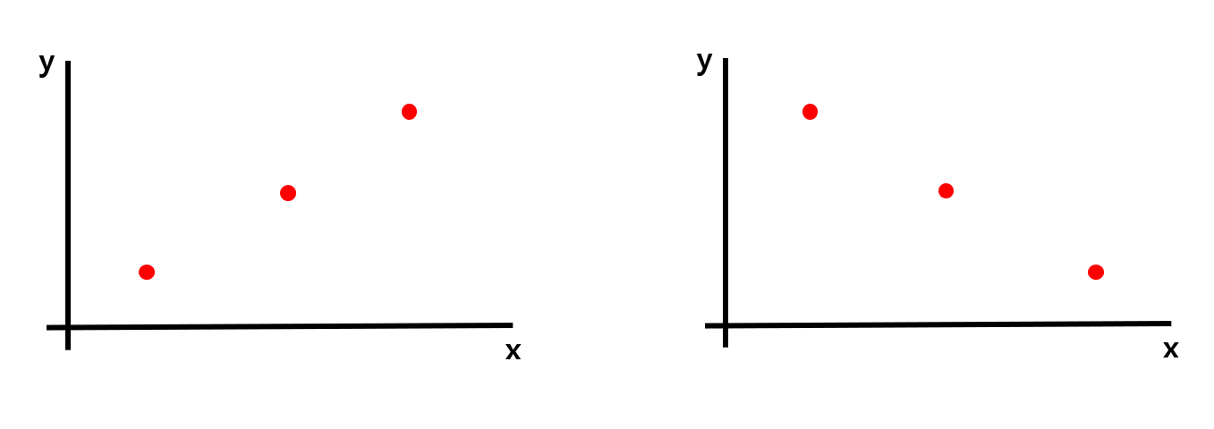 즉, 왼쪽 데이터의 covariance는 (+4+0+4)/3 = +8/3 이고, 오른쪽 데이터의 covariance는 (-4+0-4)/3 = -8/3 이 된다.