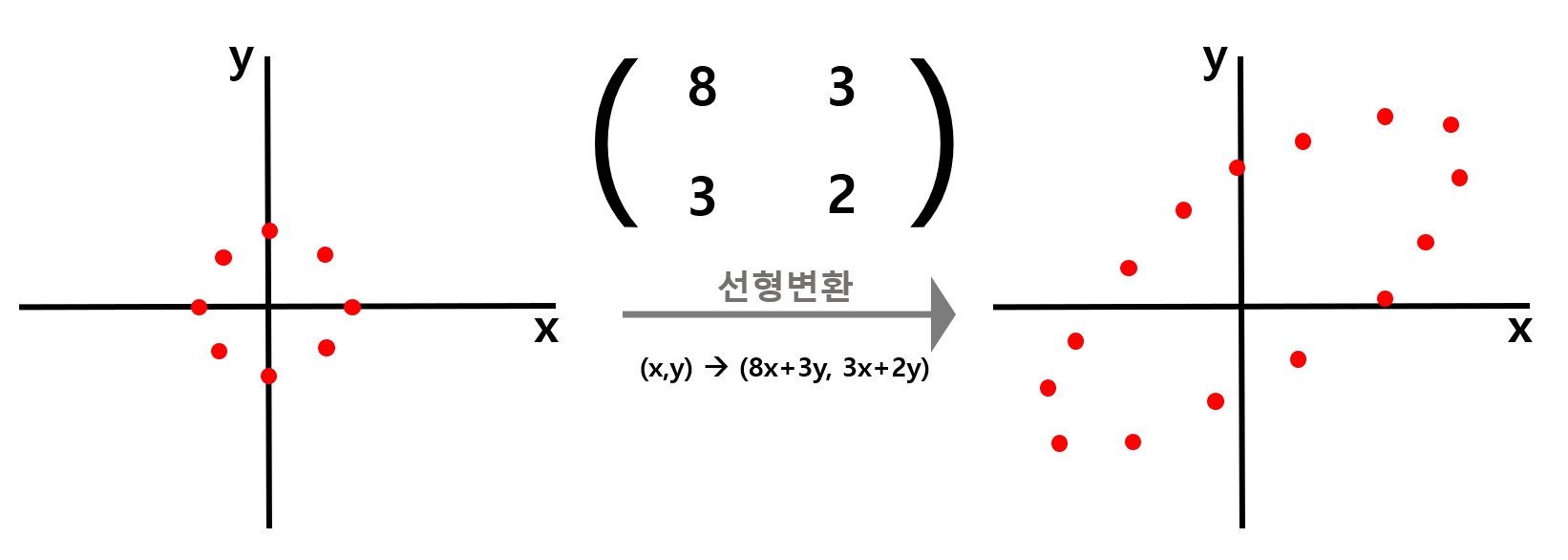 예를 들어 아까 살펴본 covariance matrix를 행렬 A라 하고 선형변환을 시켜보겠다.