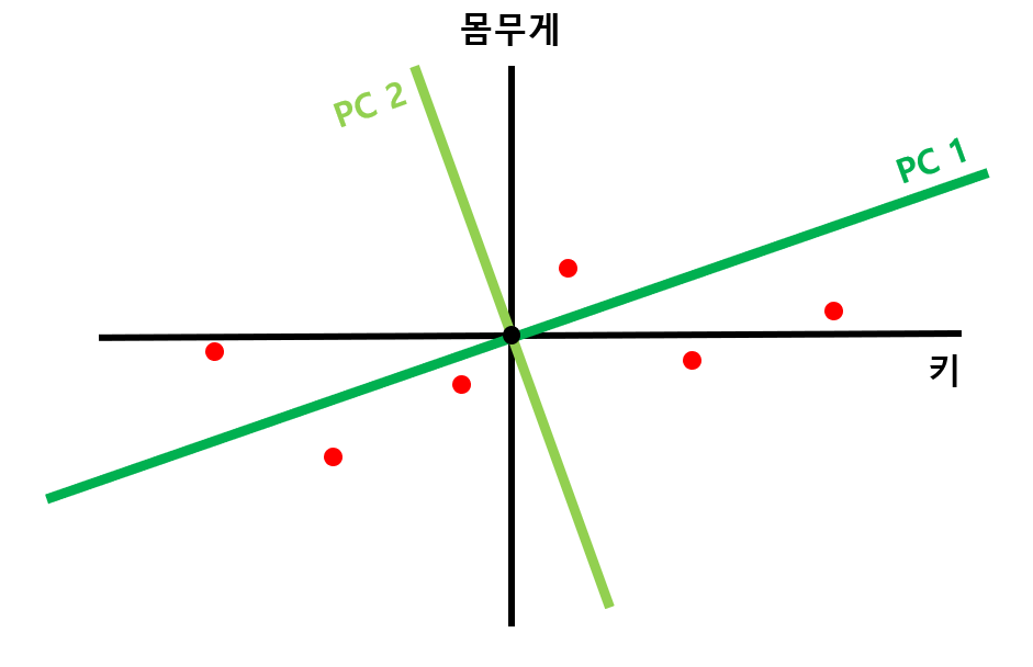 아까 그림에서의 초록색 직선을 PC1으로 잡는다.