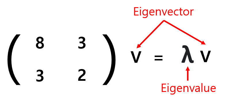 이를 수식으로 나타내보면 [그림 18] 과 같다. 선형 변환이 되기 전과 후의 방향이 같은 벡터 v가 Eigenvector이며, 변화되는 길이의 비율 λ값이 Eigenvalue이다.