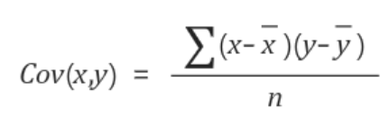 이런 문제를 해결하기 위해 covariance를 구하는 방식은 x값과 y값을 각각 x, y값의 평균의 차 곱하여 더하고(= 내적) n으로 나눠줌으로써 구할 수 있다.