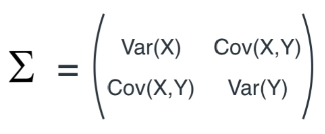 covariacne 값을 통해 covariance matrix 라는 행렬을 만들어 낼 수 있다. 시그마 기호로 표현하는 2차원 데이터에서의 covariance matrix의 정의는 다음과 같다.