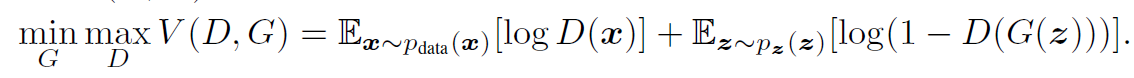 이 때, 본 논문에서 제안하는 adversarial network의 objective function (loss function) 은 아래 [그림 1]과 같다.