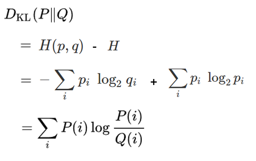 저기서 엔트로피의 변화라고 했으므로, 저 의미가 바로 H(p, q) 에서 H(p) 를 뺀 값이 되는 것이다.