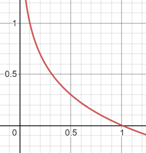 특정 문자가 나올 확률이 높아질수록(x축에서 1에 가까워 질수록) 비트수는 작아져야 하고, 특정 문자가 나올 확률이 낮아질수록(x축에서 0에 가까워 질수록) 비트수는 커져야 한다.