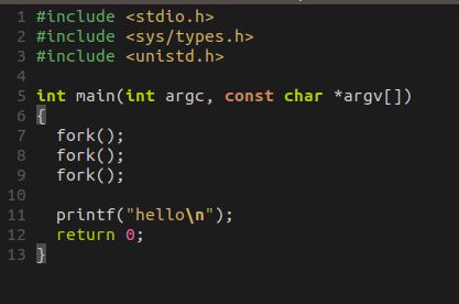 위의 그림처럼 세번 fork를 하면 총 8개의 프로세스가 생성되는 것이다.