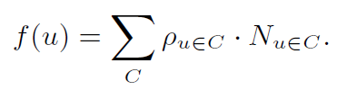또한 Nu_c(k)를 k번째 window에서 사용자 u가 작성한 리뷰의 개수라고 할 경우, community C에서 사용자 u의 weighted sum은 [그림 9]와 같이 나타낼 수 있다. 사용자 u의 weighted sum은 특정 Community C에서 사용자 u의 비중을 나타내주는 계수로 볼 수 있다.