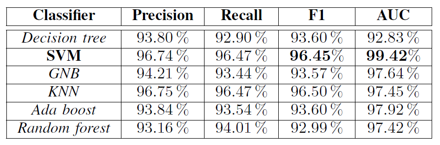특정 community가 sybil 한지 benign 한지 판단하기 위해 다양한 ML 모델을 적용한 결과 [그림 12]와 같은 결과를 얻을 수 있었다.