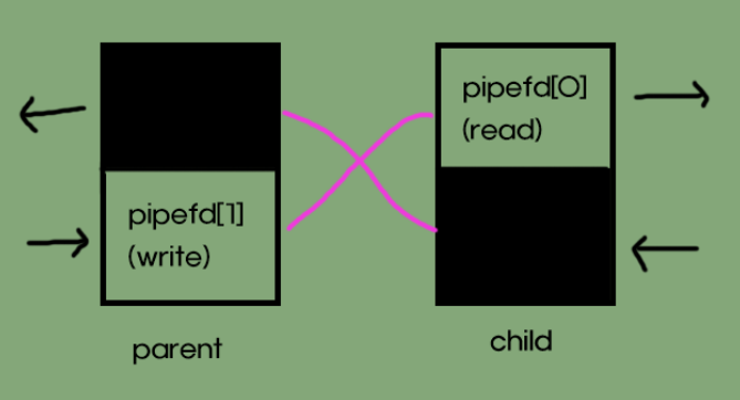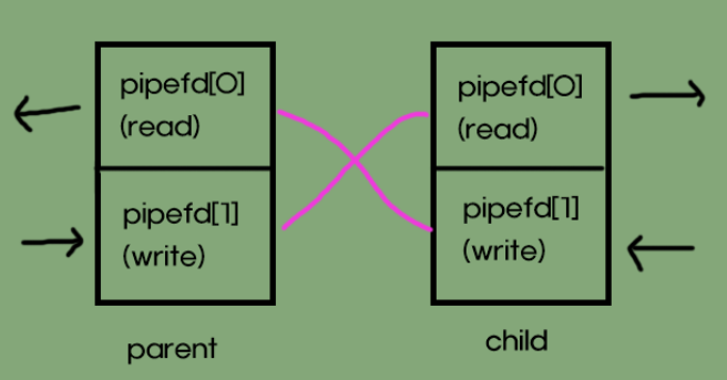 그래서 parent가 write한 데이터를 parent의 pipefd[0]에서도 read할 수 있고, child의 pipefd[0]에서도 read할 수 있다.