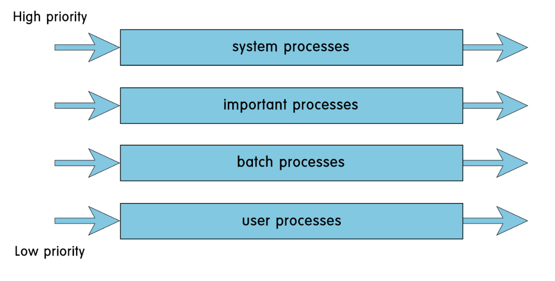 큐를 여러개 준비하고, 각각의 큐에 각각 다른 스케줄링을 적용하는 방식이다. 이 때, 큐들끼리는 priority를 가진다.