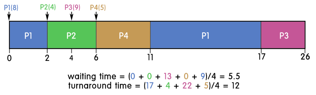 또한, 아무리 앞의 프로세스의 실행시간이 길다고 하더라도 어쨌든 모든 프로세스에게 순서가 돌아가므로 starvation도 없다.