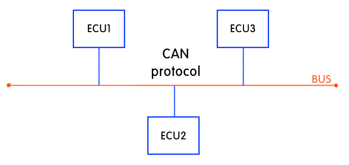 즉 CAN은 위의 그림과 같이 하나의 큰 버스 네트워크를 이용한다.