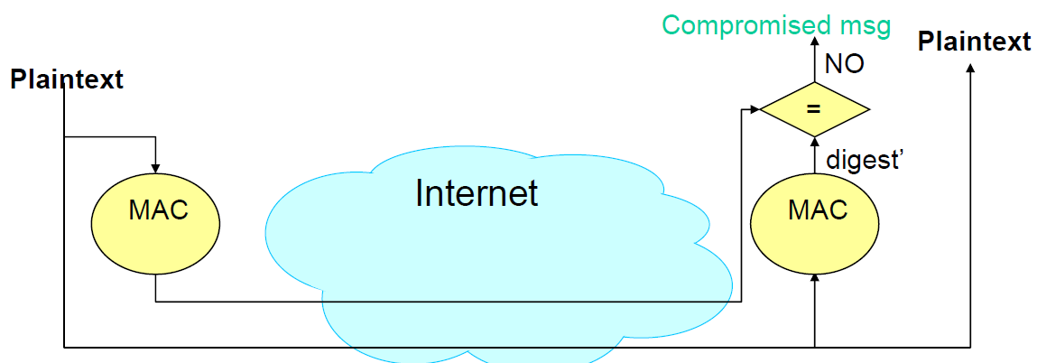- Receiver는 받은 메시지에서 MAC을 계산한 뒤, 자신이 받은 MAC과 같은지 확인한다.
