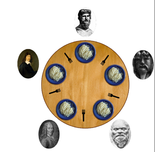 위의 그림처럼 5명의 철학자가 원탁에 앉아있다고 가정하자.