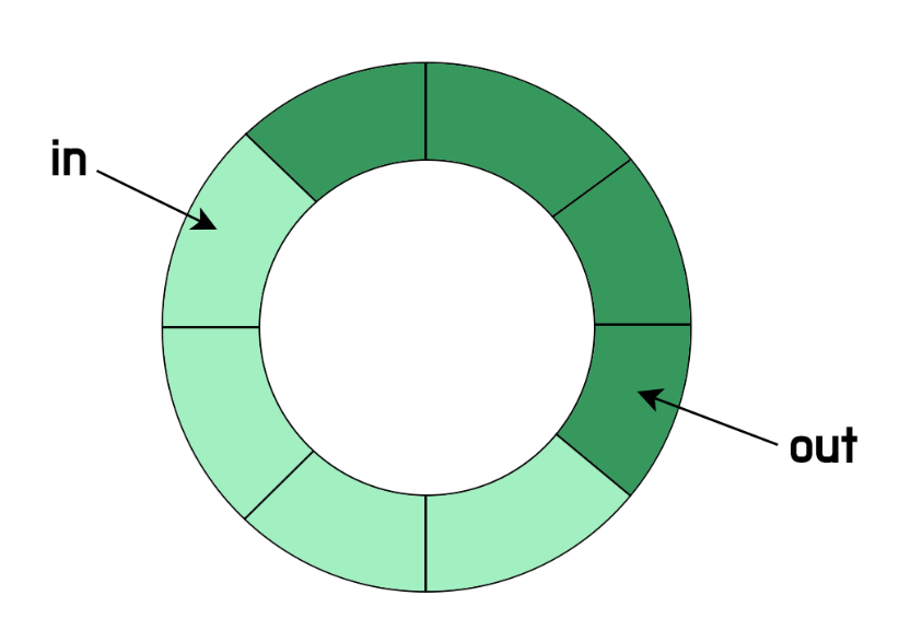 이 때, in = out이면 Buffer는 비었다고 판단한다. (그래서 총 N-1개의 원소만 사용가능하다. -> 꽉차면 in = out 되므로)