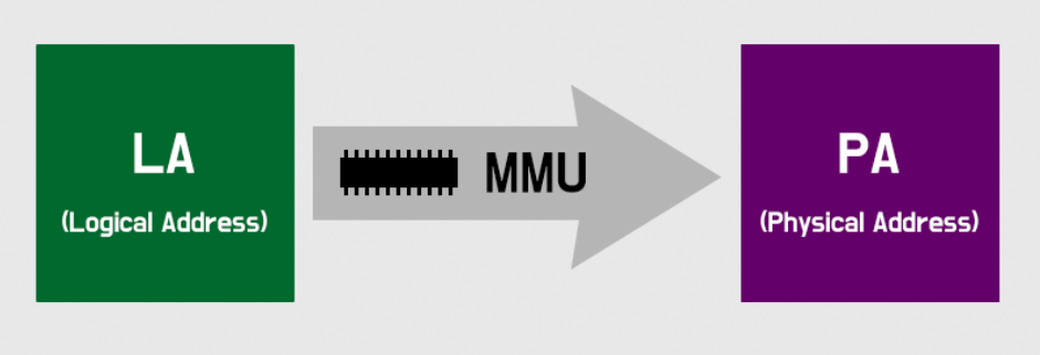 Memory Management Unit(MMU) 이라는 장치는 LA를 PA로 바꾸어주는 역할을 한다.