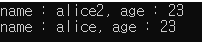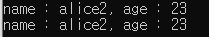 앞부분까지는 이전의 과정과 똑같지만, 이후에 alice 구조체의 name변수를 "alice2"로 바꾼것을 확인할 수 있다.