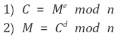 암호화 할때는 1)번 식에 공개키 (n, e)를 사용해 암호화 하고