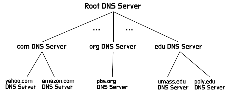 따라서 만약 사용자가 www.amazon.com 라고 주소창에 입력하면, 루트 네임 서버가 .com을 담당하는 TLD 네임 서버를 찾아준다. .com 을 담당하는 TLD 네임서버는 amazon.com을 담당하는 DNS 서버를 찾아줄 것이고, 결국 원하는 웹사이트의 IP 주소를 찾을 수 있게 된다.
