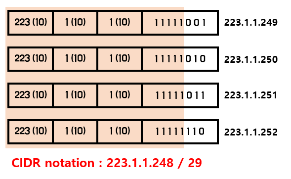 223.1.1.248 / 29 이렇게 표현할 수 있을 것이다.