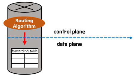어차피 한 라우터 내에서 일어나는 과정이기 때문에 나누는 것이 의미가 없긴 하지만, Forwarding을 담당하는 부분을 data plane, Routing을 담당하는 부분을 control plane이라고 부른다.
