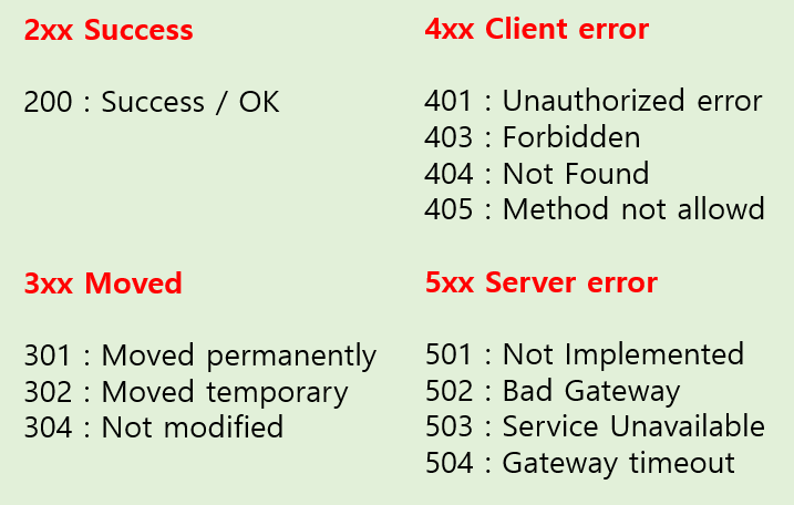 참고로 status code는 번호에 따라 아래와 같은 의미를 가지고 있다.